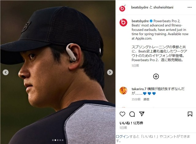 ロサンゼルス・ドジャースの大谷翔平(30)が2月20日、Instagramを更新。ヘッドホンやイヤホンを販売するブランド「Beats」の広告ビジュアルを公開した。