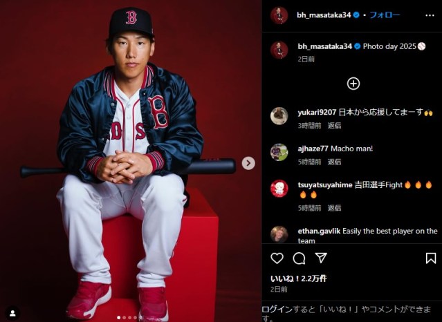 ボストン・レッドソックスの吉田正尚(31)が3月6日、自身のInstagramを更新。2025年シーズンのフォトデーで撮影された写真を公開した。