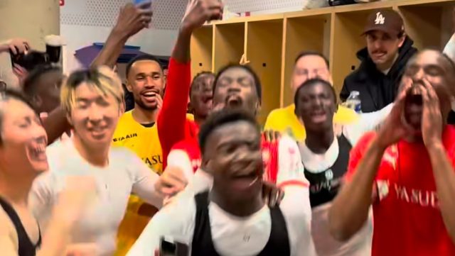 しばらく白星がなかったスタッド・ランスだが、この日、リーグ戦16試合ぶりに3-1で勝利を挙げた。公開された動画は、選手らがロッカールームで勝利を喜び踊っている様子を収めたもの。所属する3人の日本人選手のうち、関根大輝(22)と中村敬斗(24)も輪に加わり、歓喜のダンスで喜びを分かち合った。
