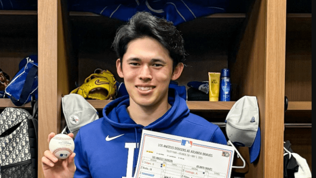 ロサンゼルス・ドジャースは5月4日、公式X(旧twitter)を更新。メジャー初勝利を挙げた佐々木朗希(23)の写真を公開した。