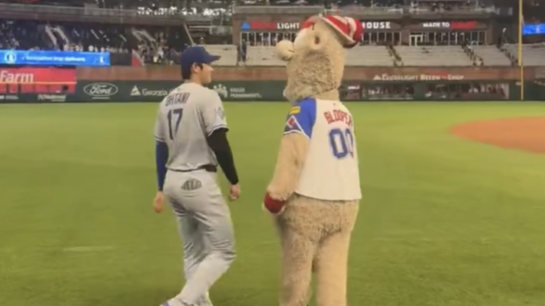 「着ぐるみなのに中々速い」大谷翔平、敵軍マスコットとの“勝負”にファン驚き