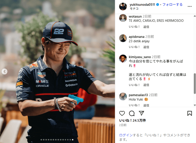 この投稿には、24万5000件の「いいね」が集まり、Instagramユーザーから「GOOD LUCK」「ユーキの挑戦、活躍が僕の唯一の原動力です!」「ユウキの笑顔は最高」「絶対に道は開ける 頑張れユーキ!」「今は自分を信じてやれる事をがんばれ」「スペインGP頑張って下さい。日本から応援してます」といった応援コメントが寄せられている。