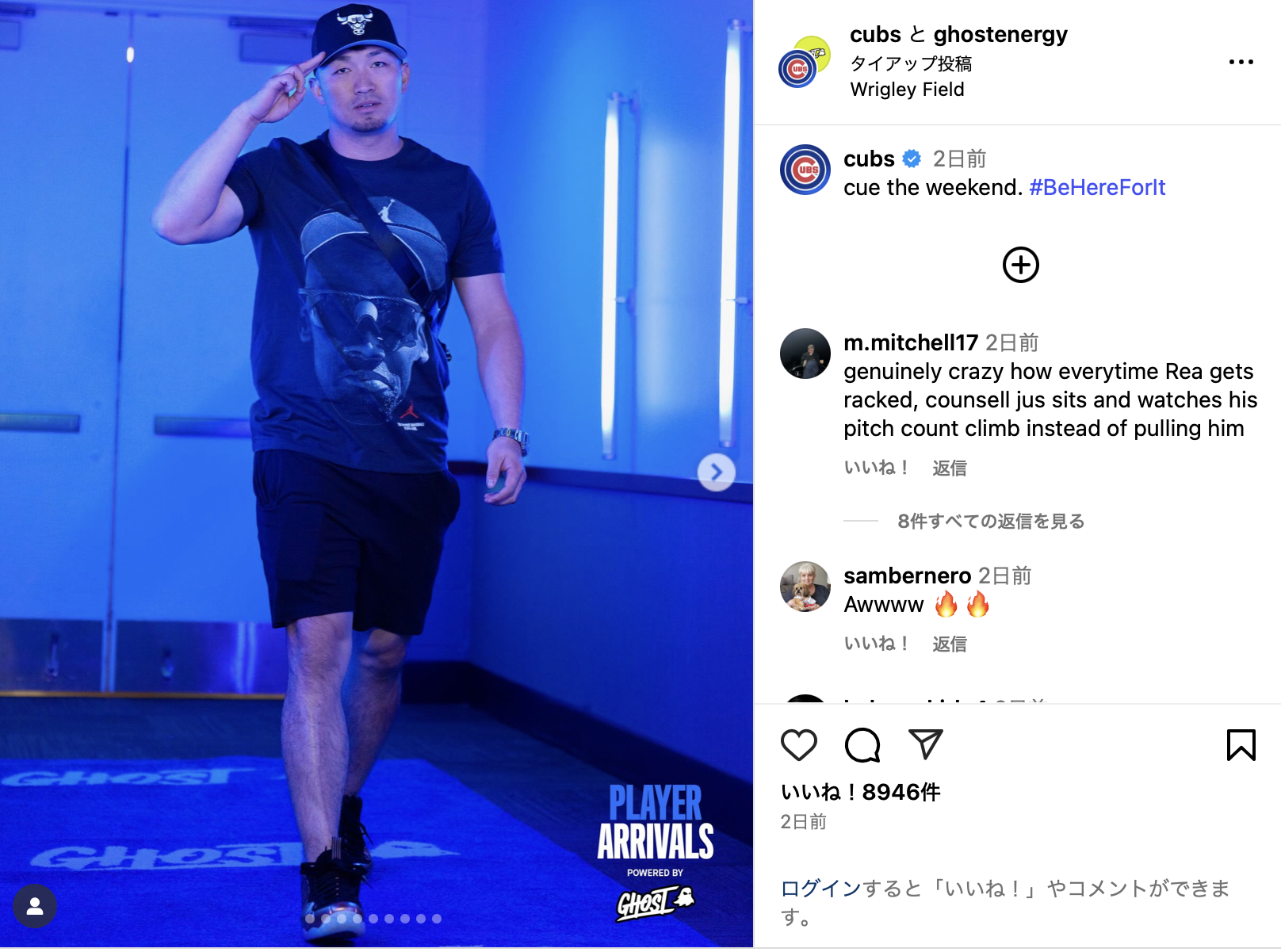 「かわいくて面白い」鈴木誠也、入場時の私服&クールなキメポーズにファン沸く