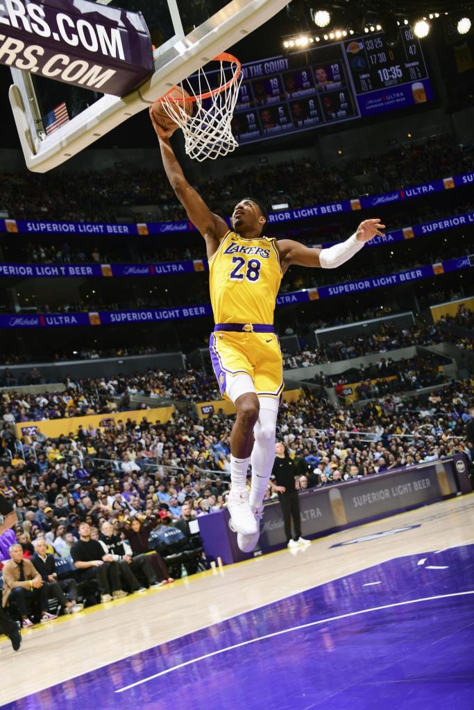 ティンバーウルブズ戦でダンクシュートをするレーカーズの八村=ロサンゼルス(NBAE・ゲッティ=共同)