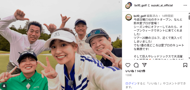 プロゴルファーと真剣対決するBSの番組「蛍原徹の真剣ゴルフ部!ホトオープン」は7月3日、公式Instagramを更新。プロゴルファーの鈴木愛(31)の写真を公開した。