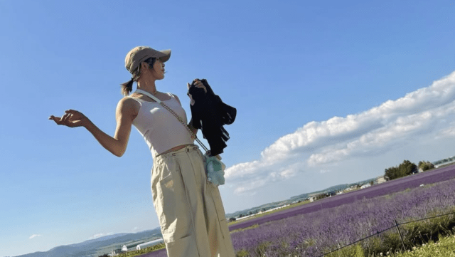 投稿には、青空の下、富良野のラベンダー畑を背に立つ金田の姿が映されている。明るい色のタンクトップにワイドパンツ、キャップという軽やかなコーディネートで、片手には上着を持ち、リラックスした表情を浮かべる一枚だ。他にも北海道グルメを楽しむ姿や観光動画を披露。「プロ17年目で初めて遠征先でどっか行った」と初めての遠征オフを楽しんだことも報告している。