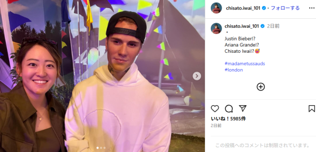 岩井は、「Chisato Iwai!?」とおちゃめなコメントを添えており、本物と見間違うほど精巧なつくりのろう人形にフォロワーからは驚きの声があがった。