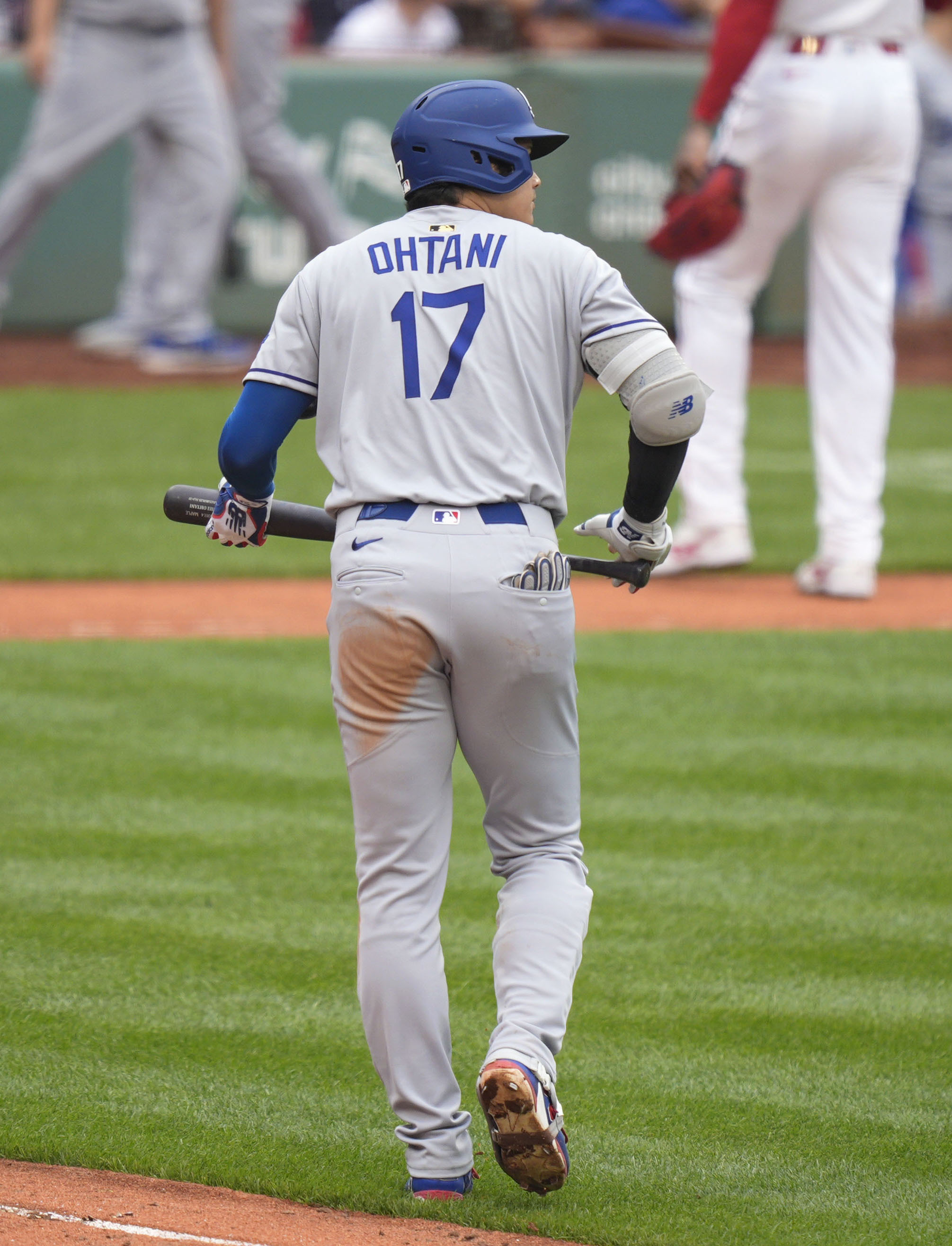 レッドソックス戦の3回、中前打を放つドジャース・大谷=ボストン(共同)