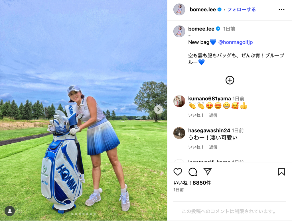 プロゴルファーで元賞金女王のイ・ボミ(37)が8月25日、Instagramを更新。新しいキャディバッグの写真を公開した。