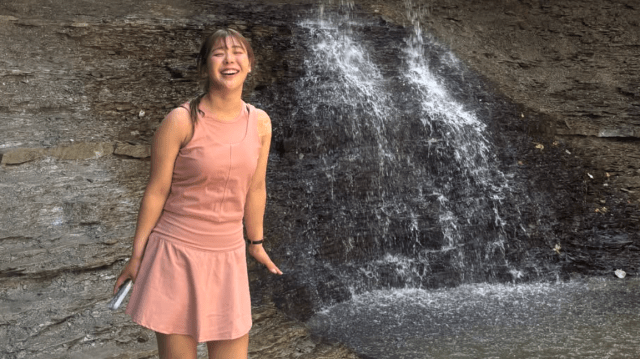 投稿では、「My week off」と英語でつづり、森林に囲まれた滝の前で笑顔を見せる姿を披露。上下ピンクのノースリーブとミニスカートのコーディネートにスニーカーを合わせ、自然体でリラックスした雰囲気。陽光に照らされた表情は晴れやかで、休日を楽しむ様子の伝わる1枚となっている。