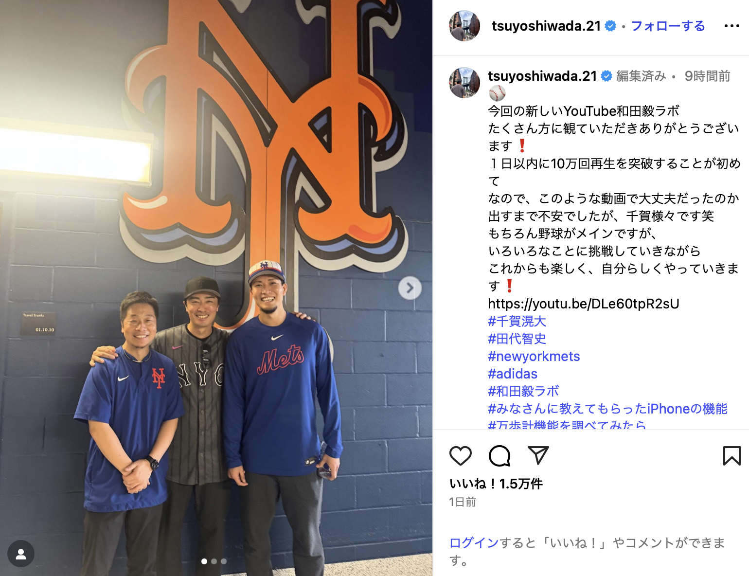 「ホークスファンで良かった」和田毅、NY訪れ千賀滉大と笑顔の記念写真投稿 出演動画は24万再生超え