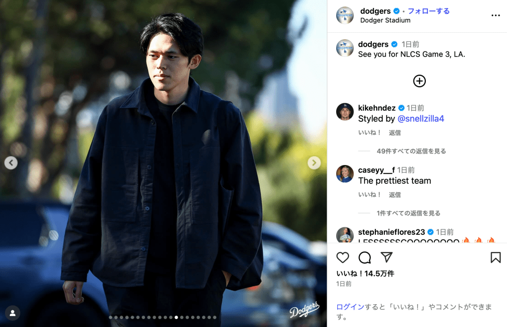 MLB Japanが10月16日、Instagramを更新。ロサンゼルス・ドジャースの選手たちの球場入りの様子を公開した。