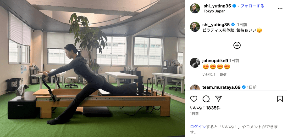 この投稿にはInstagramユーザーから「しなやかで美しいです」「足ながっ」「体幹がさらに鍛えられて強さと美しさに磨きがかかりますね!」「体幹体幹ですね」といったコメントが寄せられた。