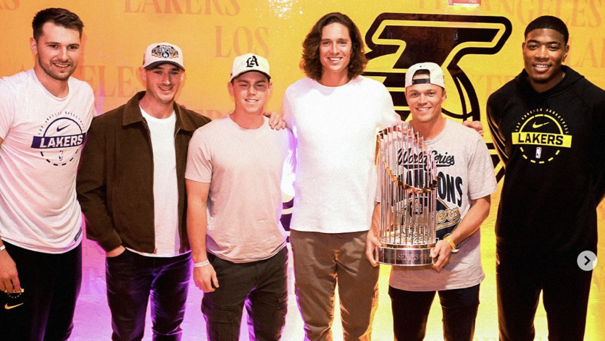 NBAロサンゼルス・レイカーズの八村塁(27)が11月6日、ワールドシリーズ連覇を果たしたロサンゼルス・ドジャースの選手たちと記念撮影を行った。ドジャースのブレイク・スネル(32)、タイラー・グラスノー(32)、ウィル・スミス(30)らが八村と並ぶ豪華ショットは、ファンの間で大きな話題となっている。
