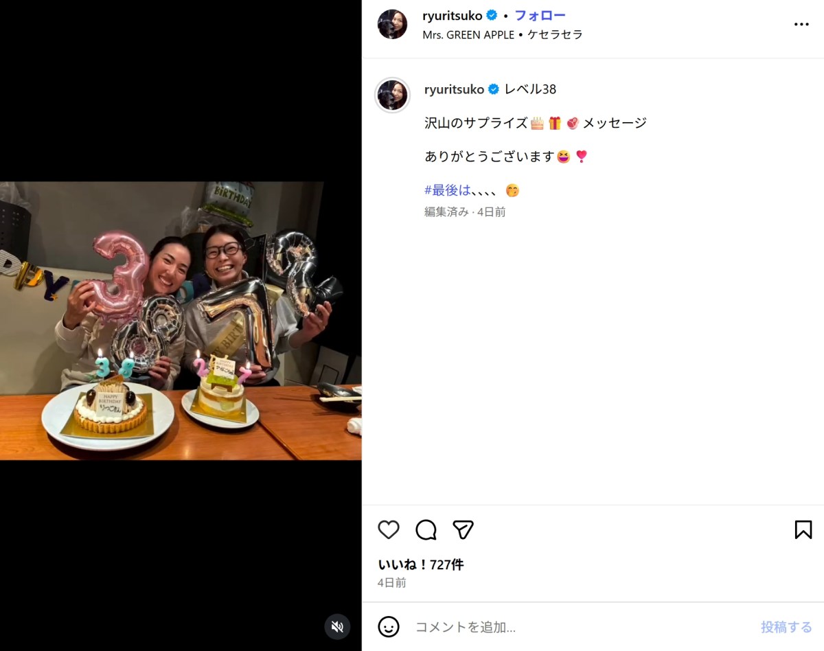 この投稿には、Instagramユーザーから「お誕生日おめでとう」「これからもとびきりの笑顔で、頑張って下さい」「素敵な人達に囲まれて素晴らしい」「シ・ア・ワ・セ」などコメントが寄せられた。