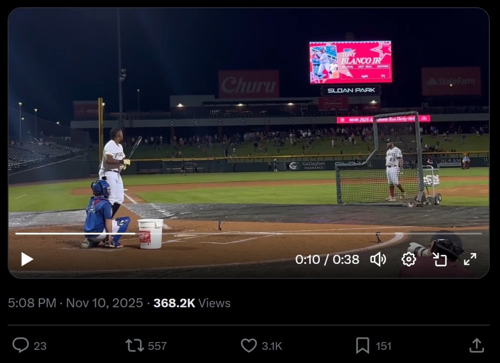 MLB Japanは11月10日、公式X(旧Twitter)を更新。中日やDeNA、オリックスで活躍したトニ・ブランコ氏の息子、トニ・ブランコJr.(20)がアリゾナ・フォールリーグのホームランダービーで優勝したと報告した。