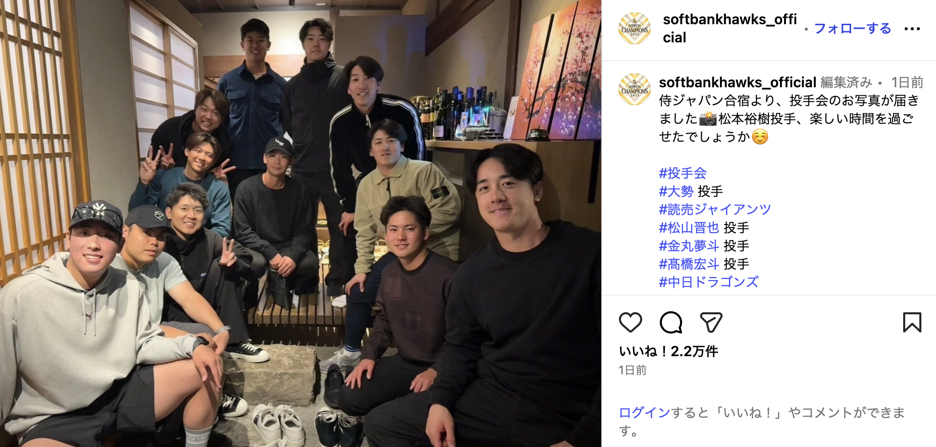 「癖強メンツで最高」「ライバルたちが一致団結する時の頼もしさ」 ホークス、松本裕樹ら侍ジャパン投手陣12名の合宿風景を公開し反響