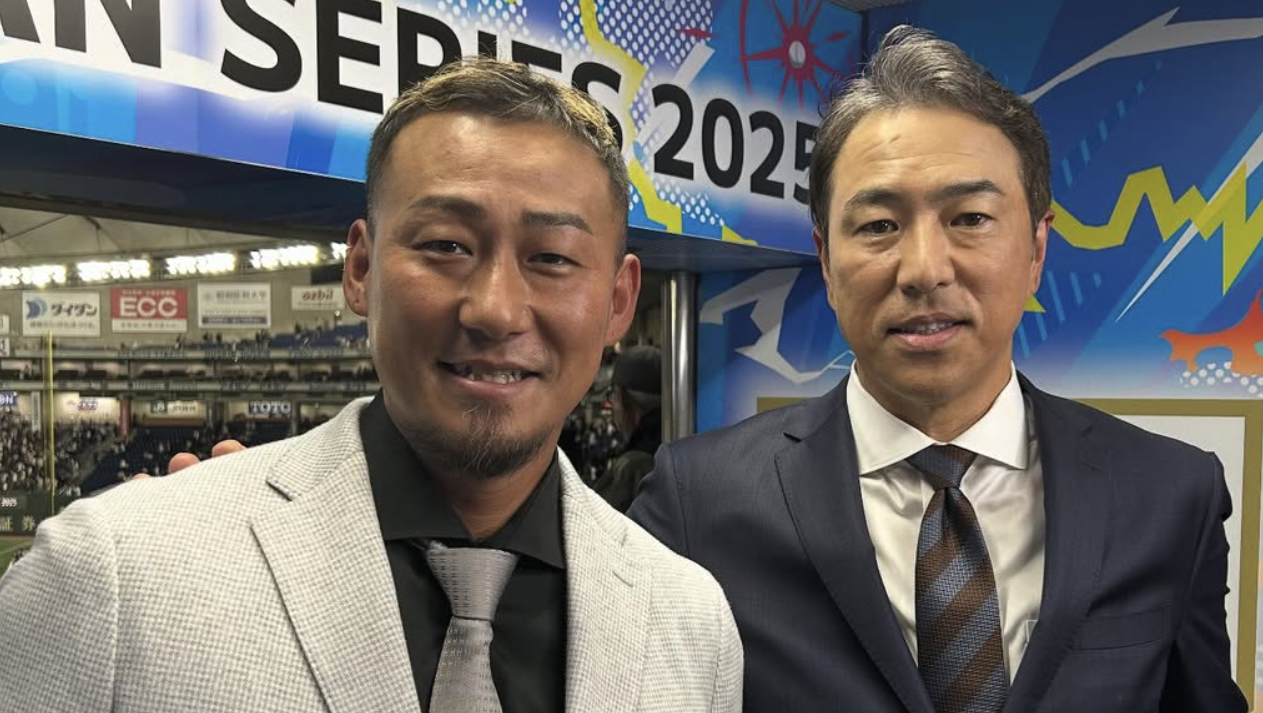 中田翔、始球式後のまさかの一言に反響 白スーツ姿も話題に「最高でした」「こちらもニッコリ」