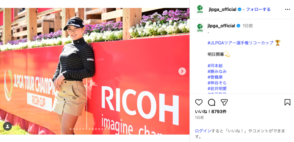 日本女子プロゴルフ協会(JLPGA)が11月26日、Instagramを更新。27日に開幕するJLPGAツアーチャンピオンシップリコーカップの出場選手の写真を公開した。