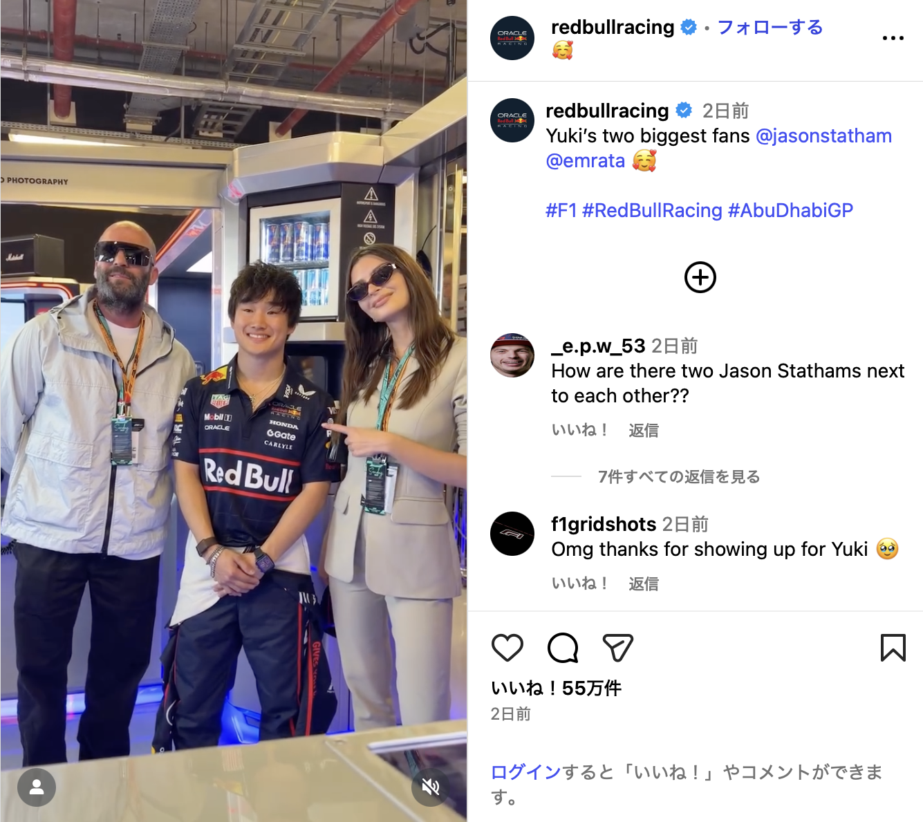 【F1】角田裕毅の応援に駆けつけた“超大物”ハリウッド俳優の姿に反響「愛されてるね」「ラストランを見届けに来てくれてた」