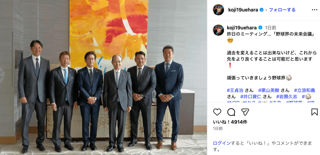 上原浩治、王貞治らと“野球界の未来会議”開催 レジェンド集結にどよめき「メンバーが凄すぎて」「このまま侍ジャパン首脳陣に…」