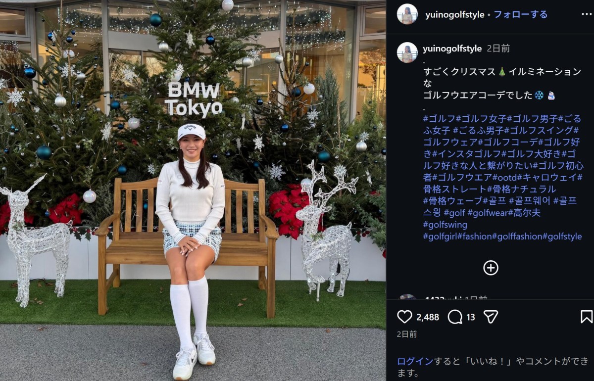 プロゴルファーの河本結(27)が12月18日、Instagramを更新。クリスマスコーデを披露し、ファンの間で話題を呼んでいる。