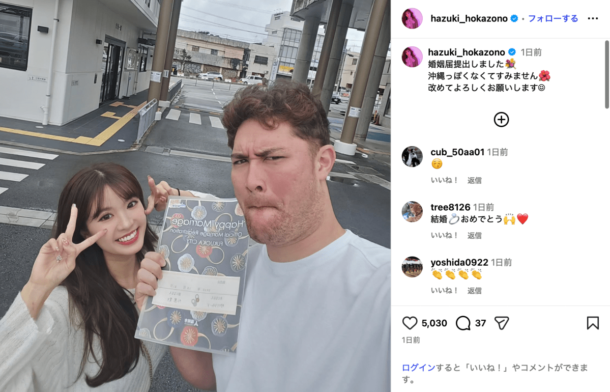HKT48元メンバー、巨人選手と婚姻届を提出し幸せ満点のツーショットに「末永くお幸せに」「うちのリチャードをよろしく」と祝福の嵐