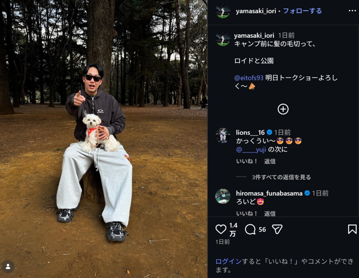 読売ジャイアンツの山﨑伊織(27)が1月24日、Instagramを更新。愛犬・ロイドとの近影を公開した。