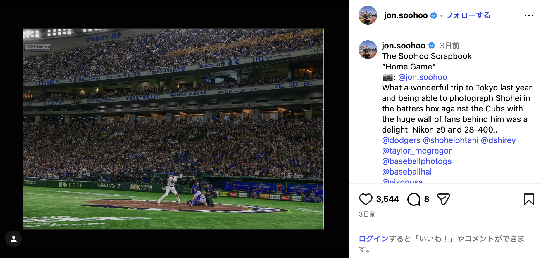 ド軍球団カメラマン、MLB東京シリーズ2025の秘蔵写真を公開 大谷翔平の打席写真に「私たち日本のファンにとって一生の宝物です」