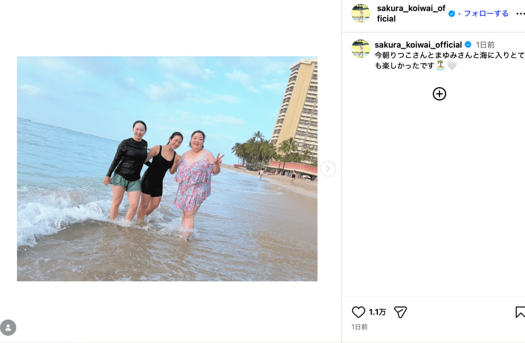 小祝さくら、ハワイの海で「とても楽しかった」! 先輩ゴルファーらと海外を満喫する姿に1万いいね超の反響