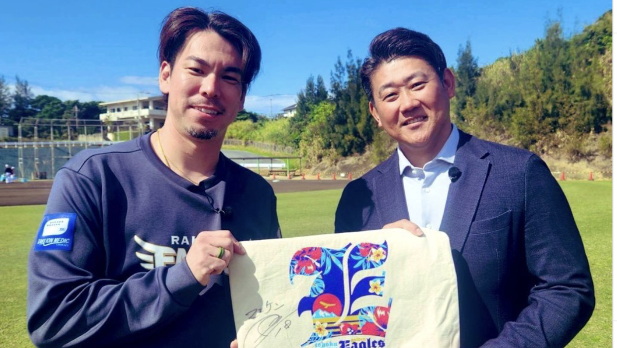 「こんばんは! 今日は沖縄で楽天の前田投手にインタビュー取材してきました!」と投稿されたのは、前田のサイン入りのトートバッグを持ってほほ笑む前田と松坂の姿。松坂は「まだキャンプは始まったばかりですが順調そうでした!その模様は今夜の報道ステーションを見て頂けたらと思います!」とつづった。