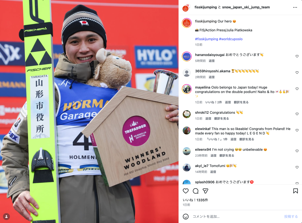 Viessmann FIS Ski Jumping World Cupが、3月16日に公式Instagramを更新。山形市役所所属のスキージャンプ男子、内藤智文(33)を紹介した。ノルウェー・オスロで行われたW杯男子個人第26戦では、内藤が131.5メートルを飛び初優勝。自身初の表彰台がそのまま初Vとなる快挙となり、仕事と競技を両立する「公務員ジャンパー」の頂点到達に視線が集まっている。