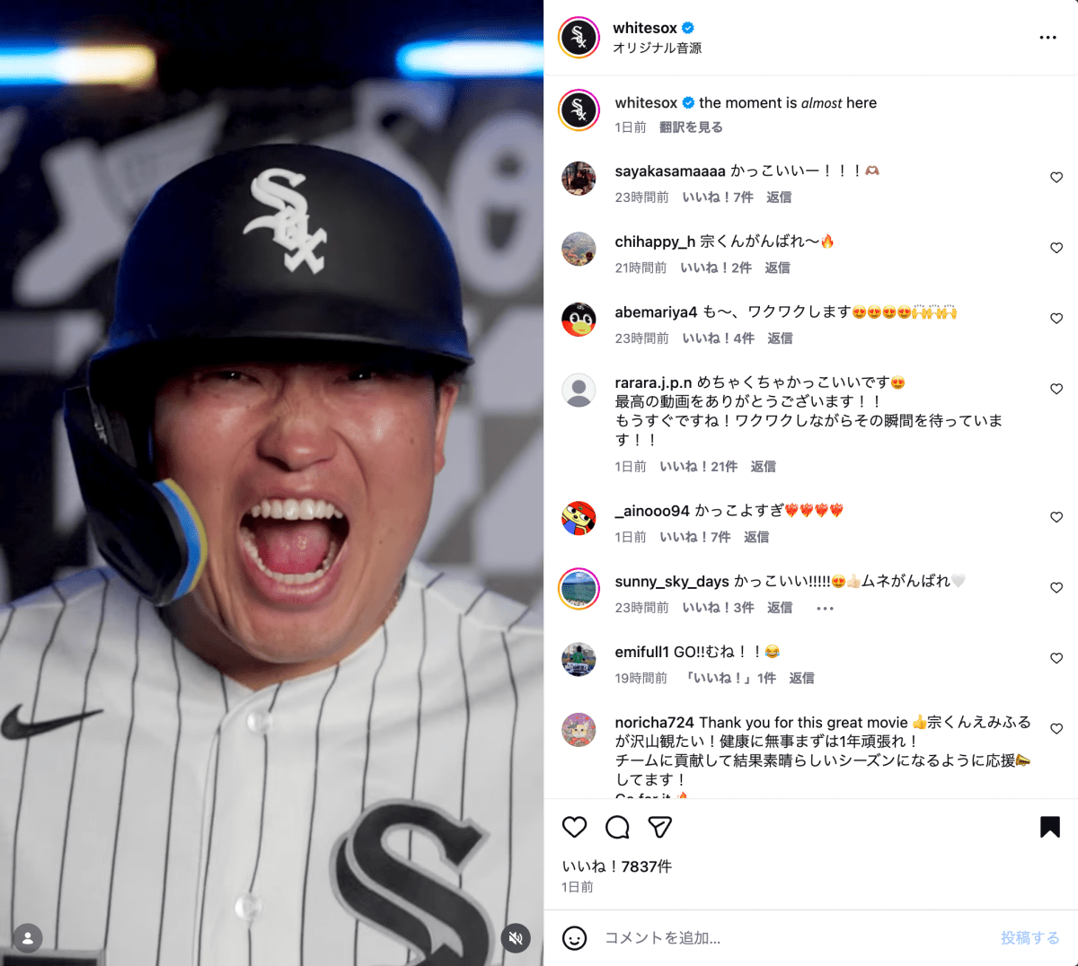 この投稿には、Instagramユーザーから「めちゃくちゃかっこいいです。最高の動画をありがとうございます!!」「も〜、ワクワクします」「カッコいい動画ありがとうございます!! MLBは全く興味無かったのですが、村上選手の追っかけとして、全てチェックしていこうと思います!!」「期待をビシビシ感じます。頑張れ!村上選手」といった期待の声が寄せられている。
