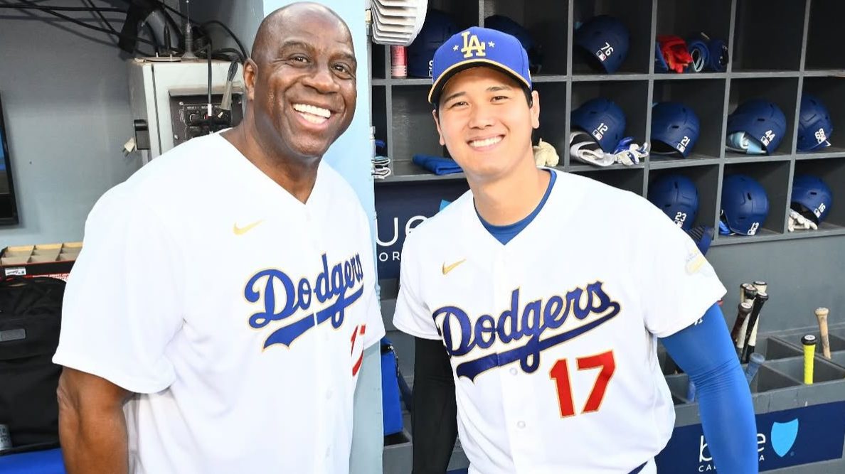 捕手・大谷翔平がNBAレジェンドと始球式で“夢の共演” 豪華ツーショットに「これは歴史的」「エグすぎるやろ」ファン騒然