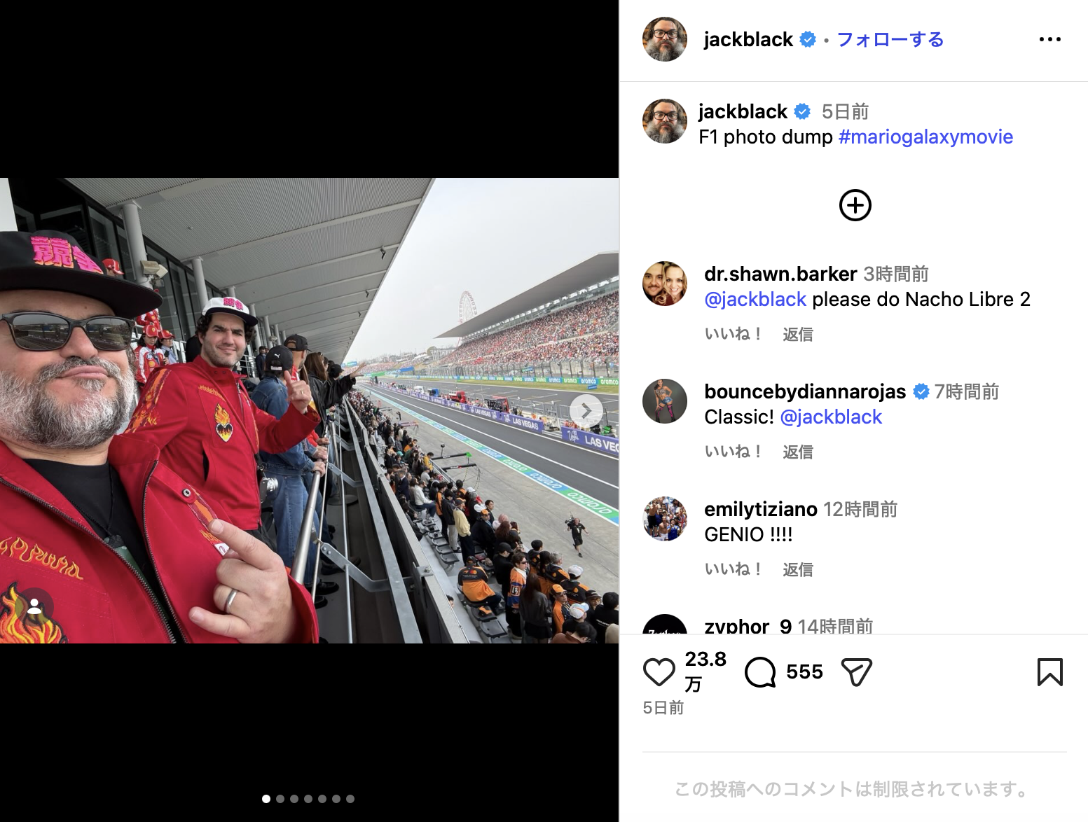 日本GPに人気映画出演の米俳優が来場! 自撮りショットに鈴鹿来とったんか笑」「テンション上がるーーー!!」