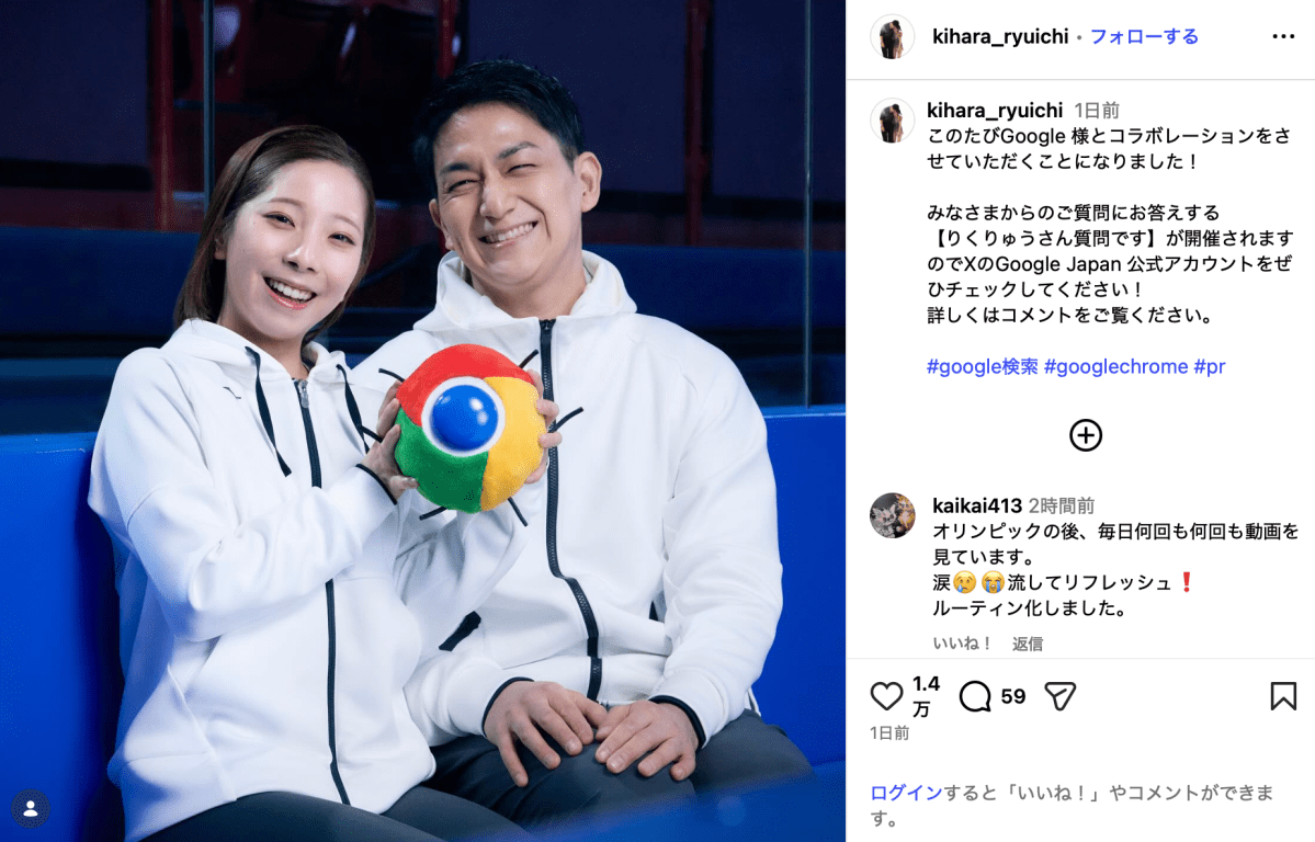 「このたびGoogle 様とコラボレーションをさせていただくことになりました!」と投稿されたのは、木原と三浦の笑顔の写真。手にはGoogleのキャラクターのぬいぐるみを持ち、ファンからの質問に答える新たな企画が始まることを伝えた。