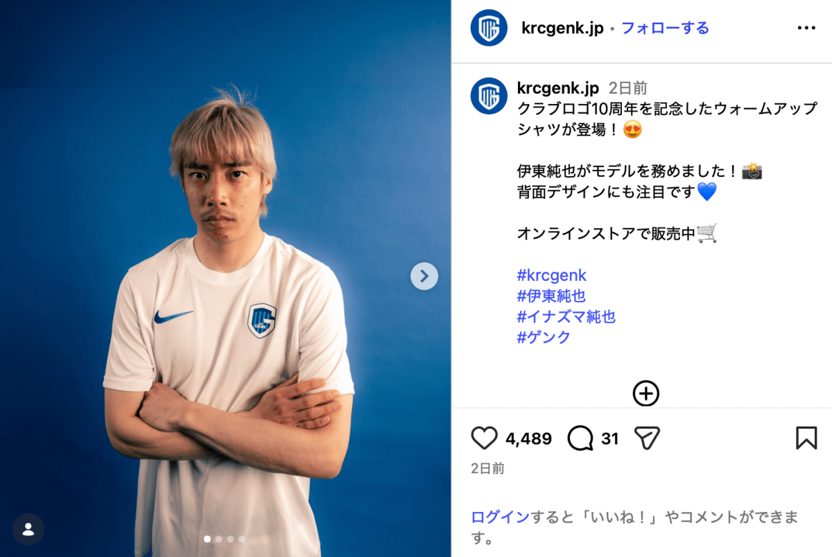 KRC Genk Japanが4月9日、Instagramを更新。伊東純也(33)の写真を公開した。