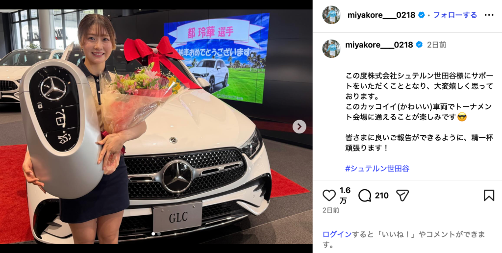 女子プロゴルファーの都玲華(22)が4月14日、Instagramを更新。メルセデス・ベンツの正規ディーラー・シュテルン世田谷からサポートを受けることを報告した。