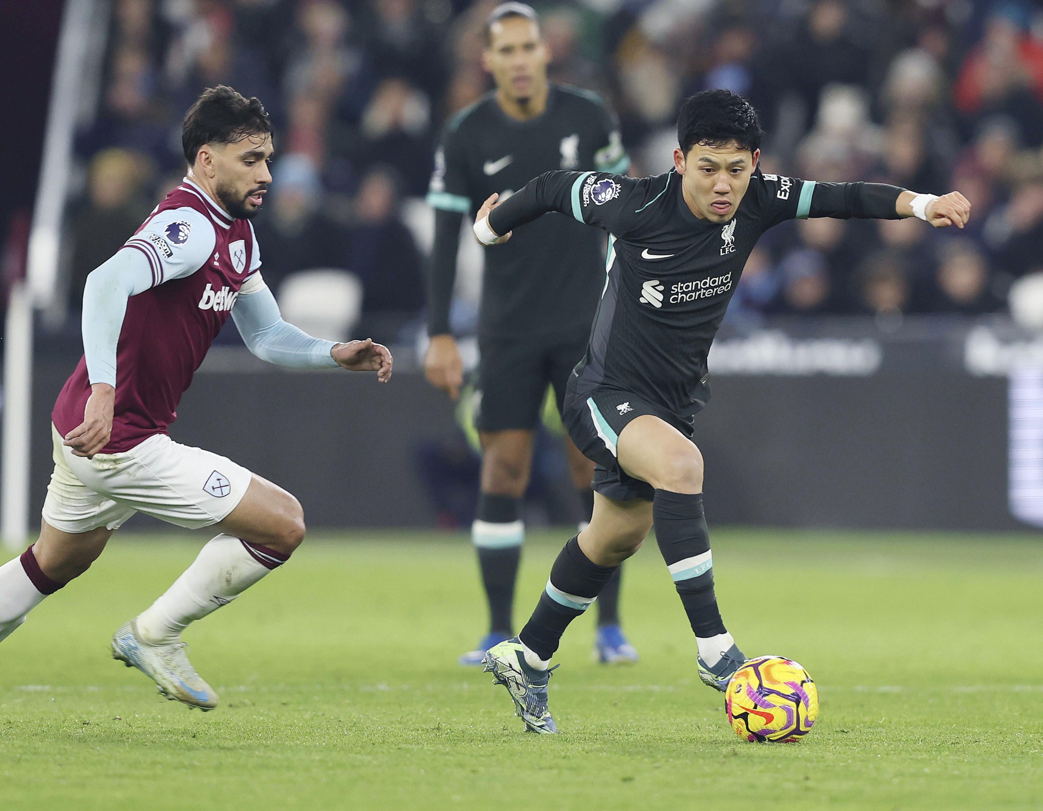大量5点を奪いリバプール勝利、遠藤は57分から出場【プレミアリーグ】 サッカー イングランド 速報 2025/01/06 ウェストハム戦の後半、攻め込むリバプールの遠藤(右)=ロンドン(共同) 記事を読む サッカーの記事を読む